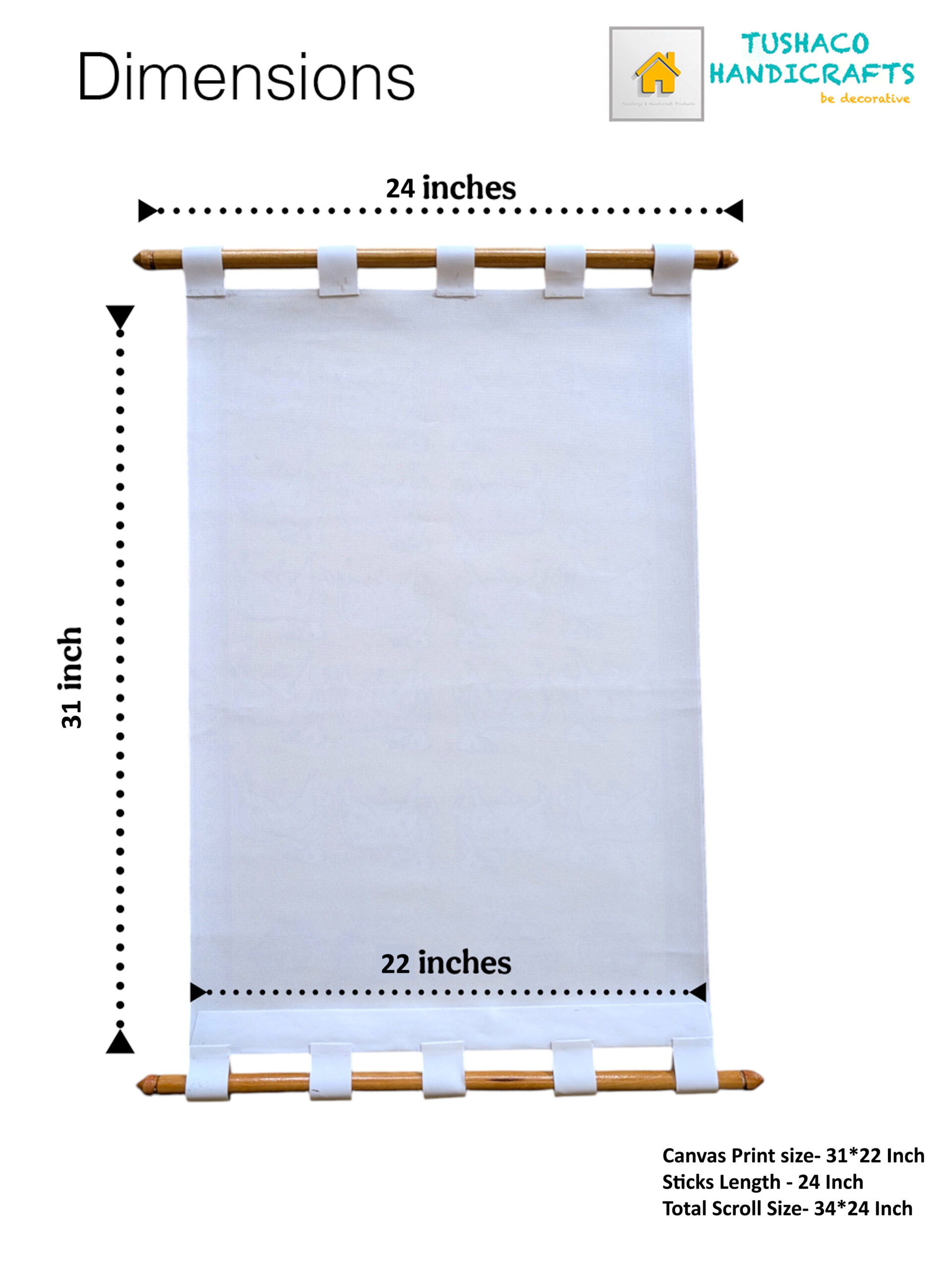 - The artwork will be on a 26″ x 18″ canvas, supported by a 20″ stick, with the overall scroll measuring 29″ x 20″. The canvas offers ample space for intricate details, while the stick provides stability and structure. The final scroll size ensures a well-proportioned and elegant presentation, making it perfect for display in various settings.